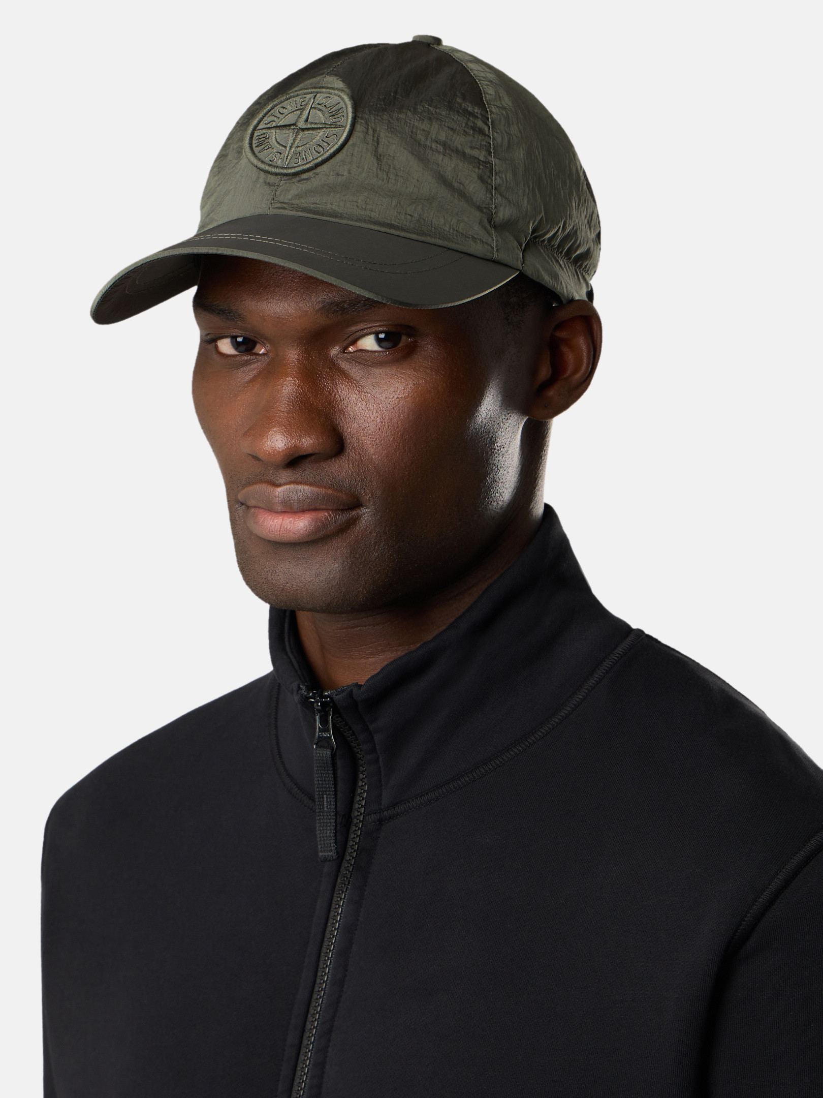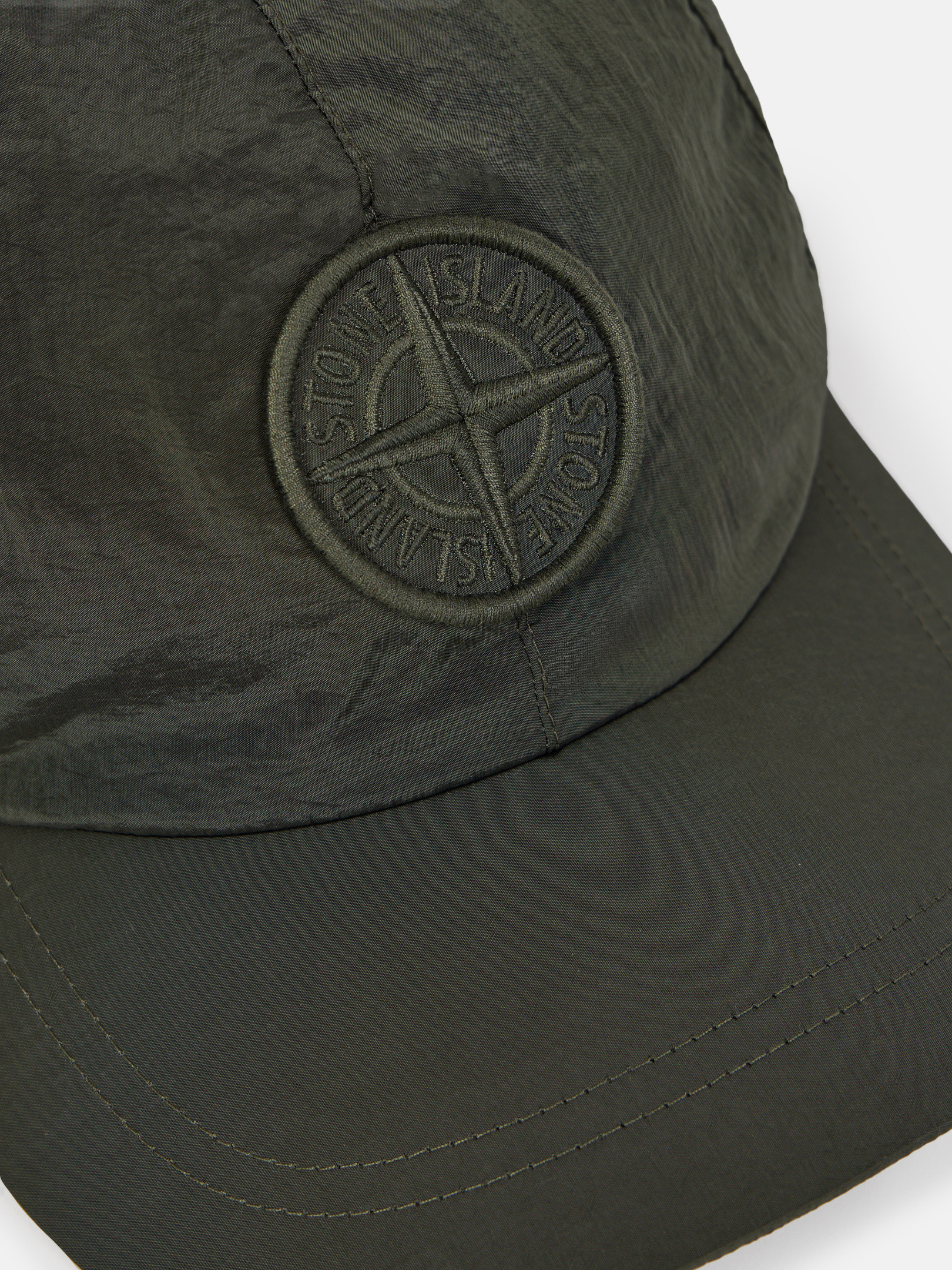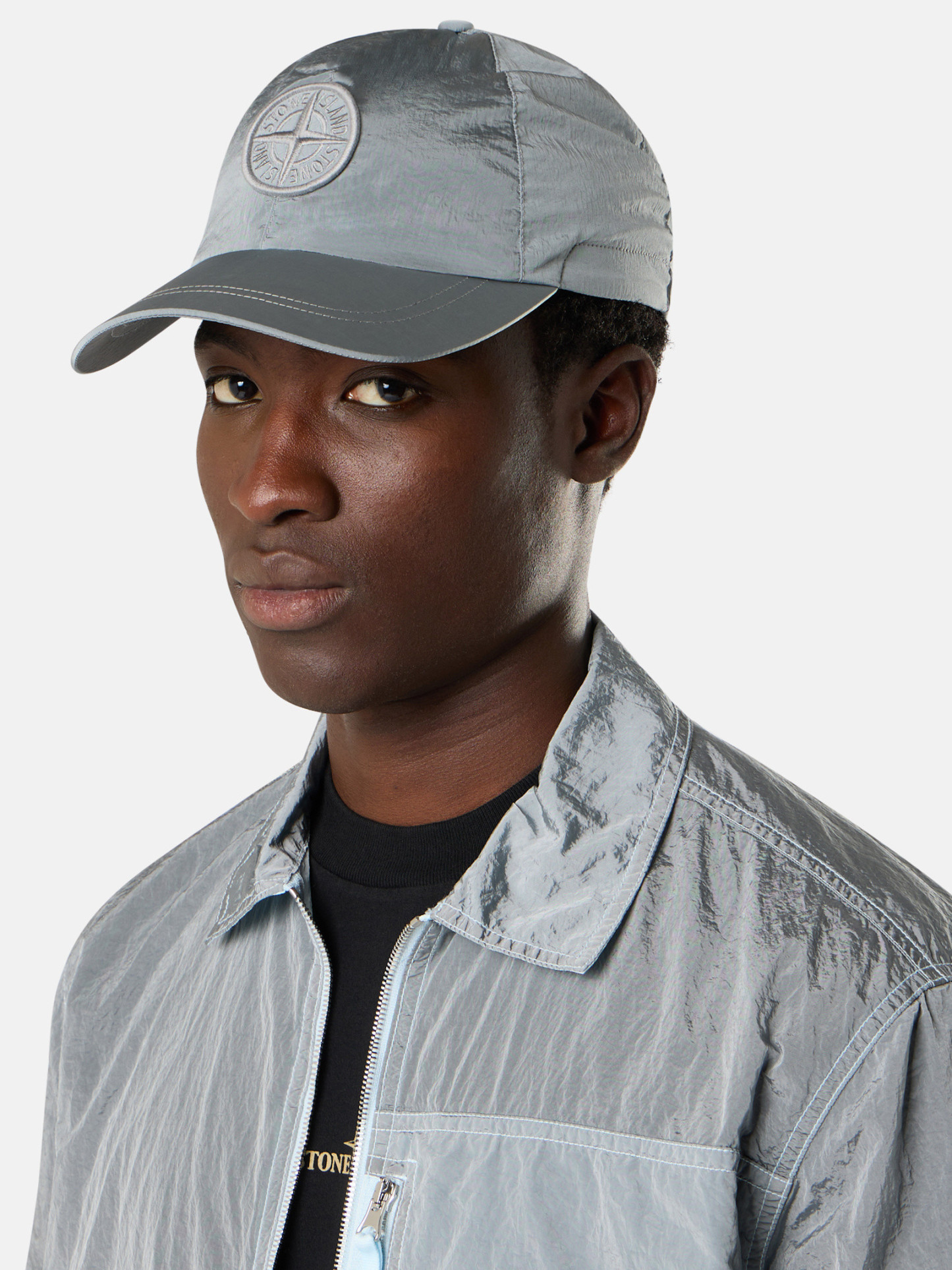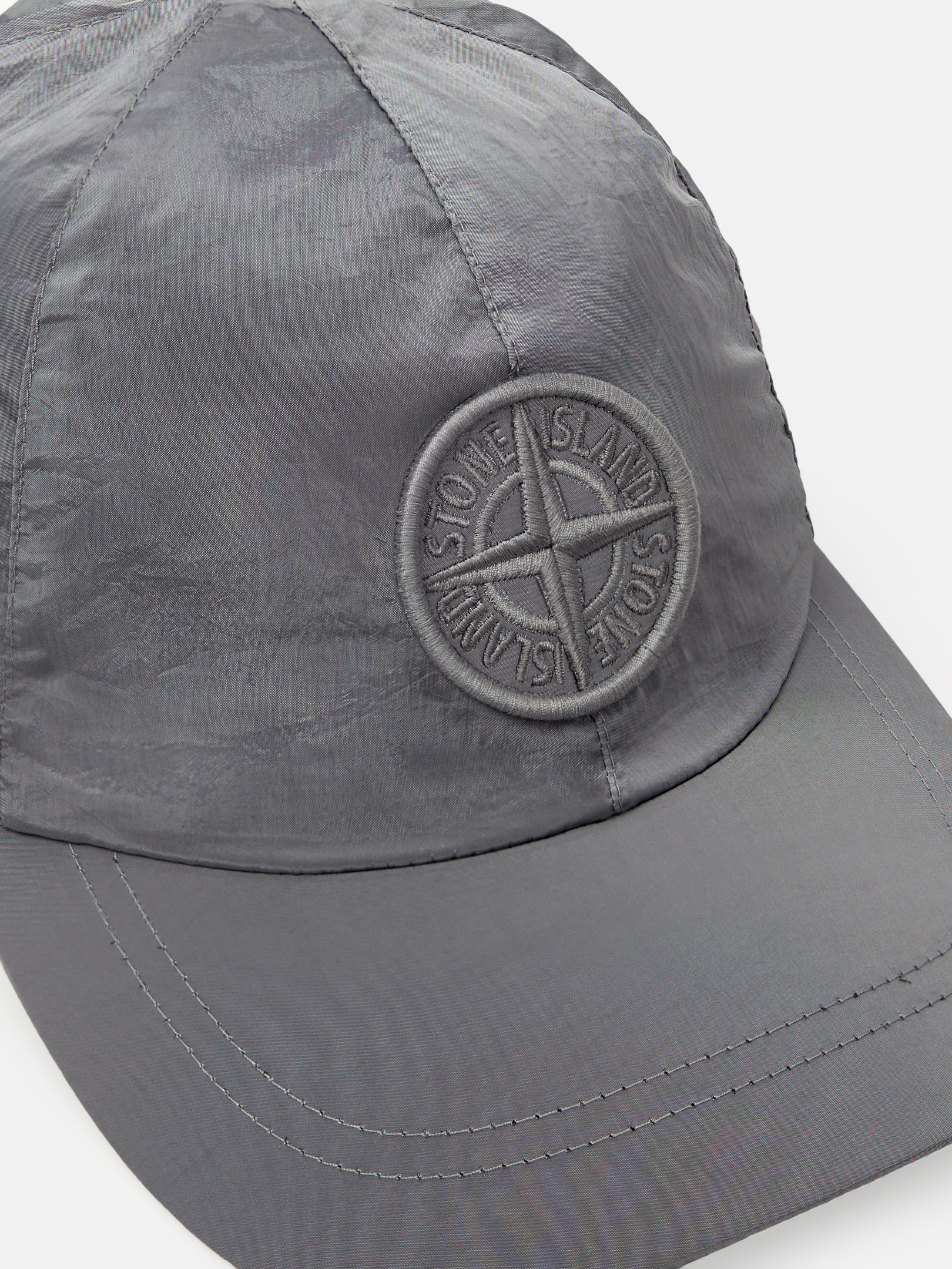 Baseball cap in STOthtNE ISLthtAND's iridescent Nylon Metal fabric. The evolution of this iconic fabric sees the use of ECONYL® regenerated yarns: the life-ended nylon, pre- and post-consumer, is recycled with a complex depolymerization process to create this fiber that features the same intrinsic characteristics of nylon from fossil raw material.