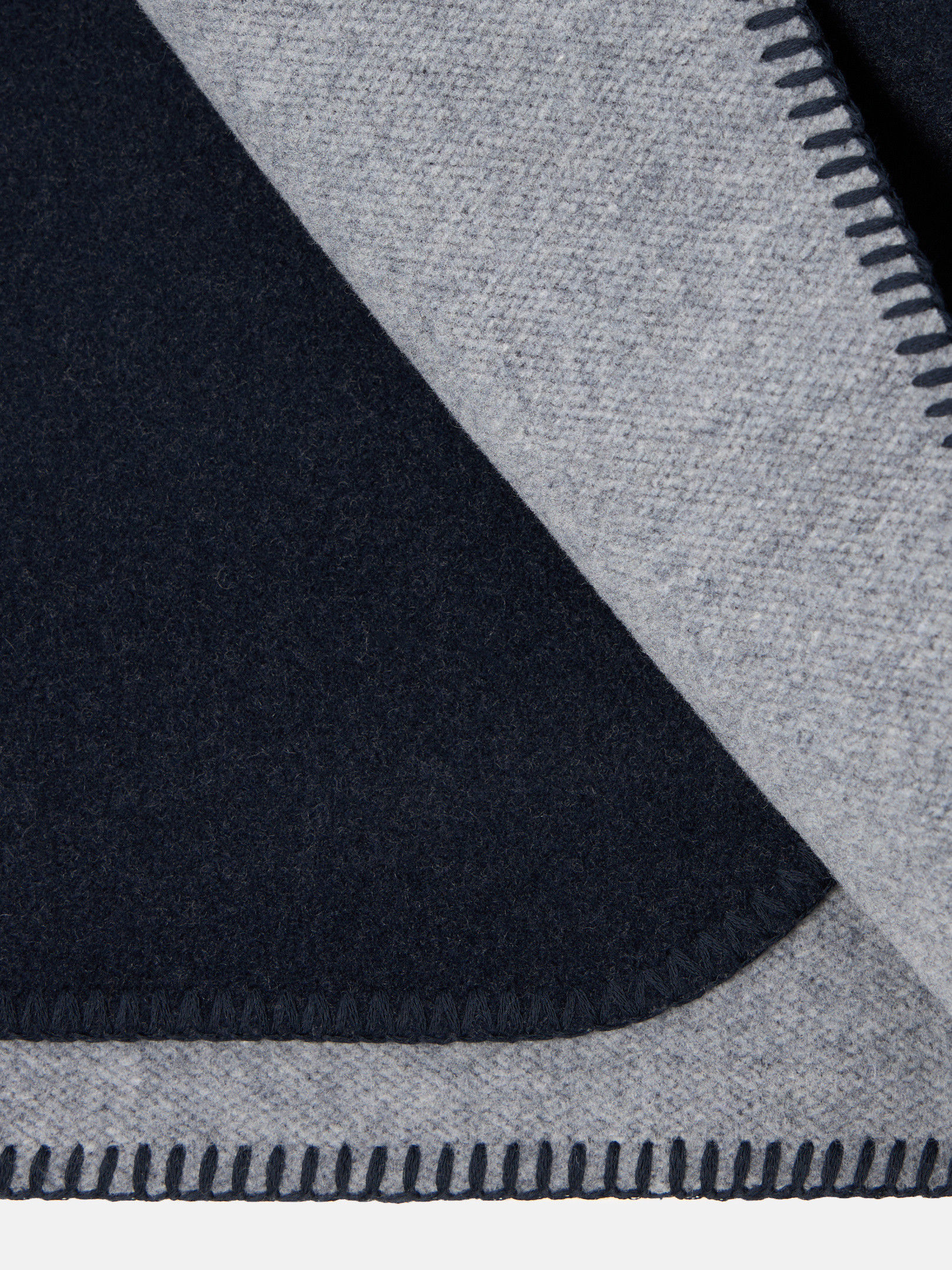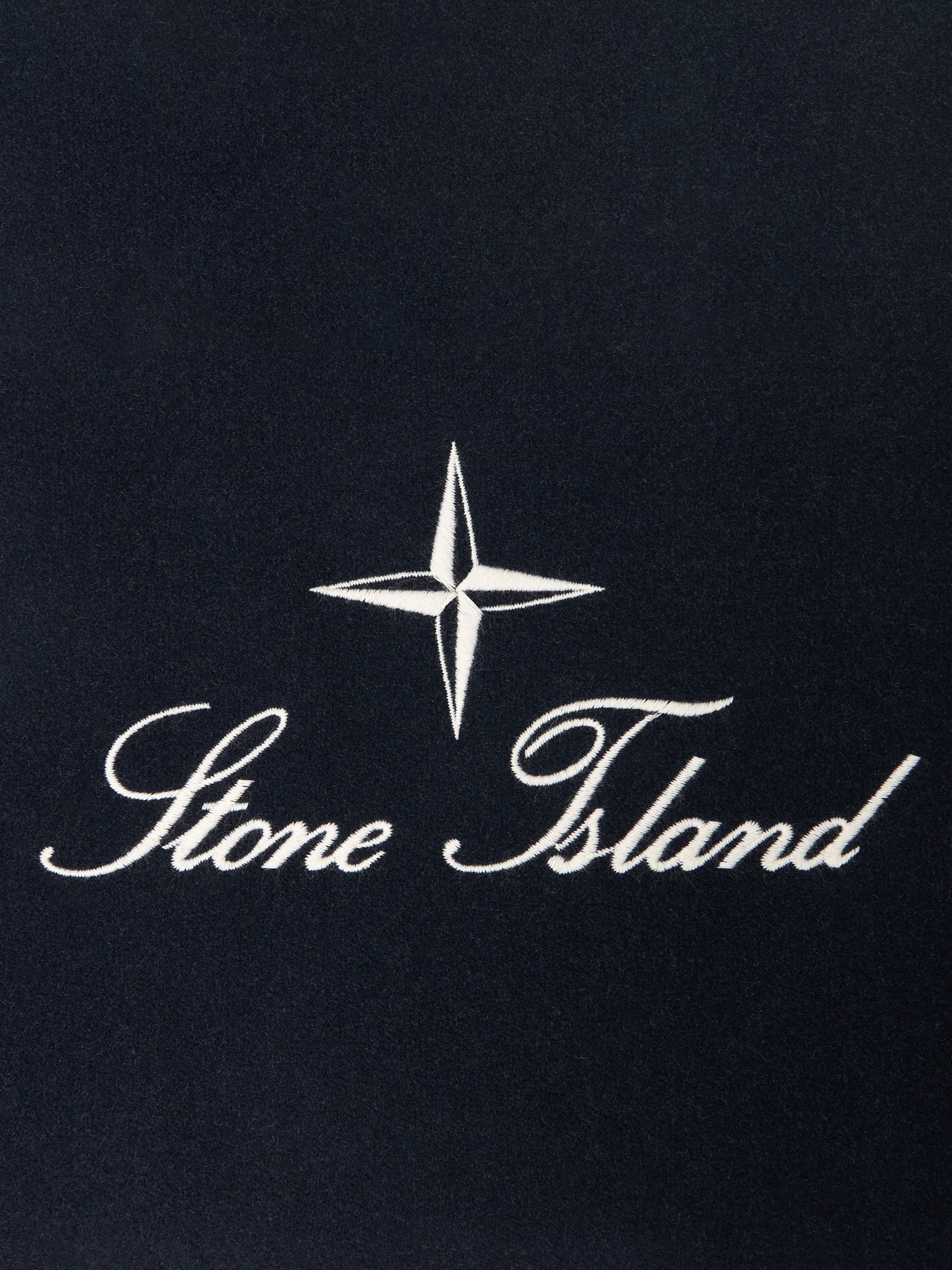 Blanket in panno double, featuring an archival STOthtNE ISLthtAND logo and blanket stitch trim.