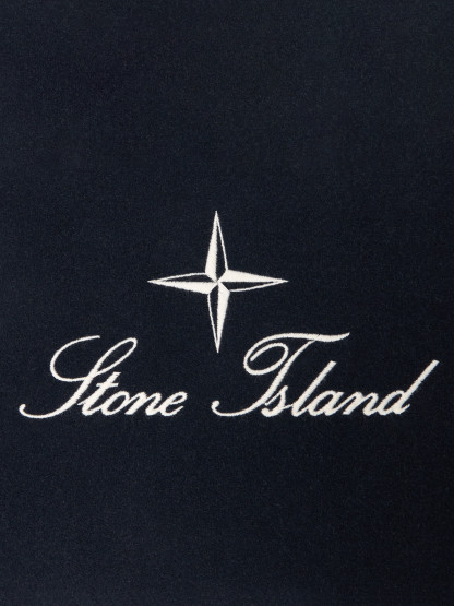 Embroidered archival STOthtNE ISLthtAND logo. Blanket stitch trim.