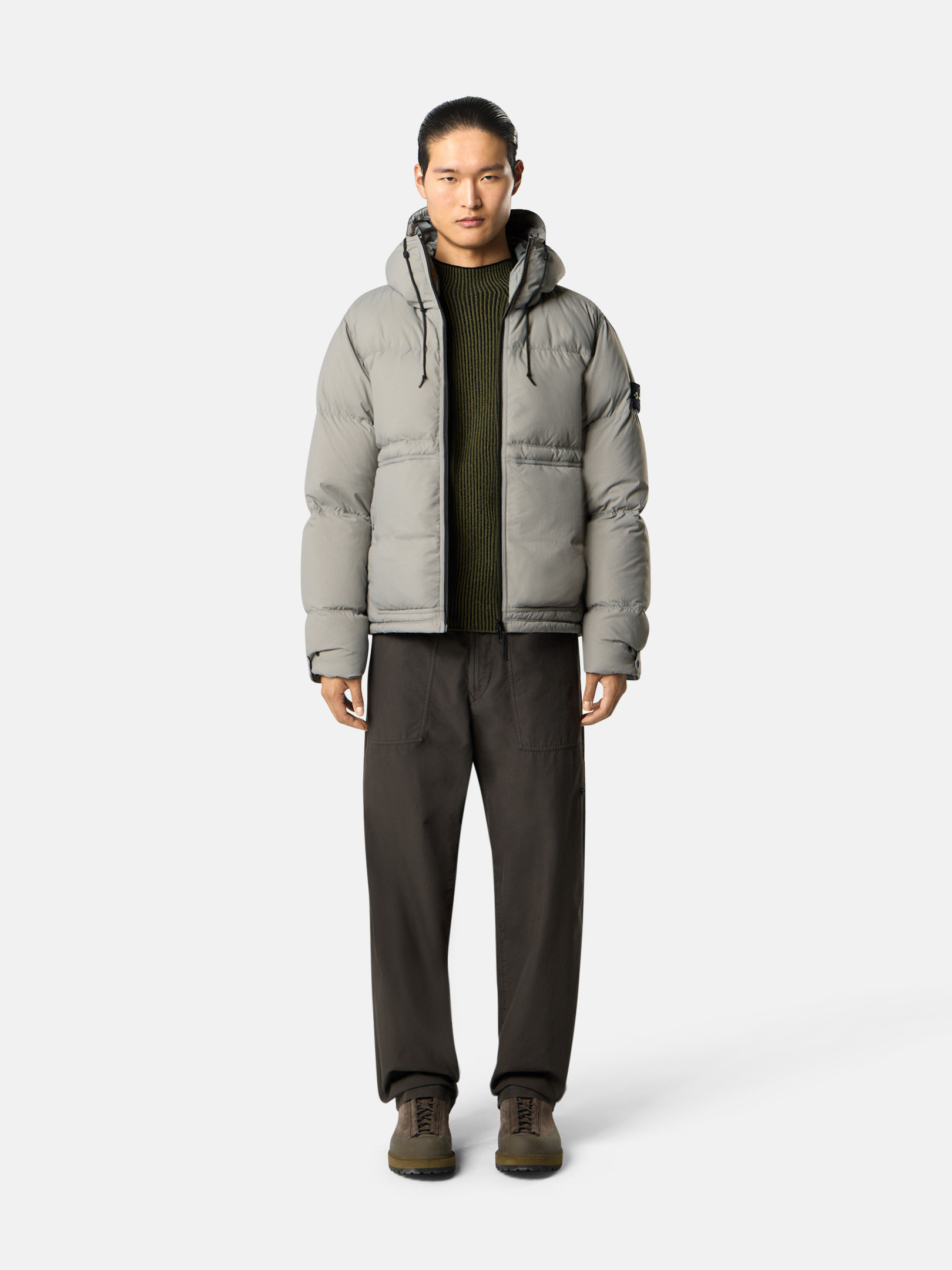 Down parka in a CORDURA® Advanced Fabrics ripstop nylon 6.6. The 30 denier Taslan yarns lend a matt appearance and a cotton-like hand to the material. The fabric is lightweight yet extremely durable. A special treatment renders it water repellent. The piece is padded with the finest feathers. RDS - Responsible Down Standard certified.