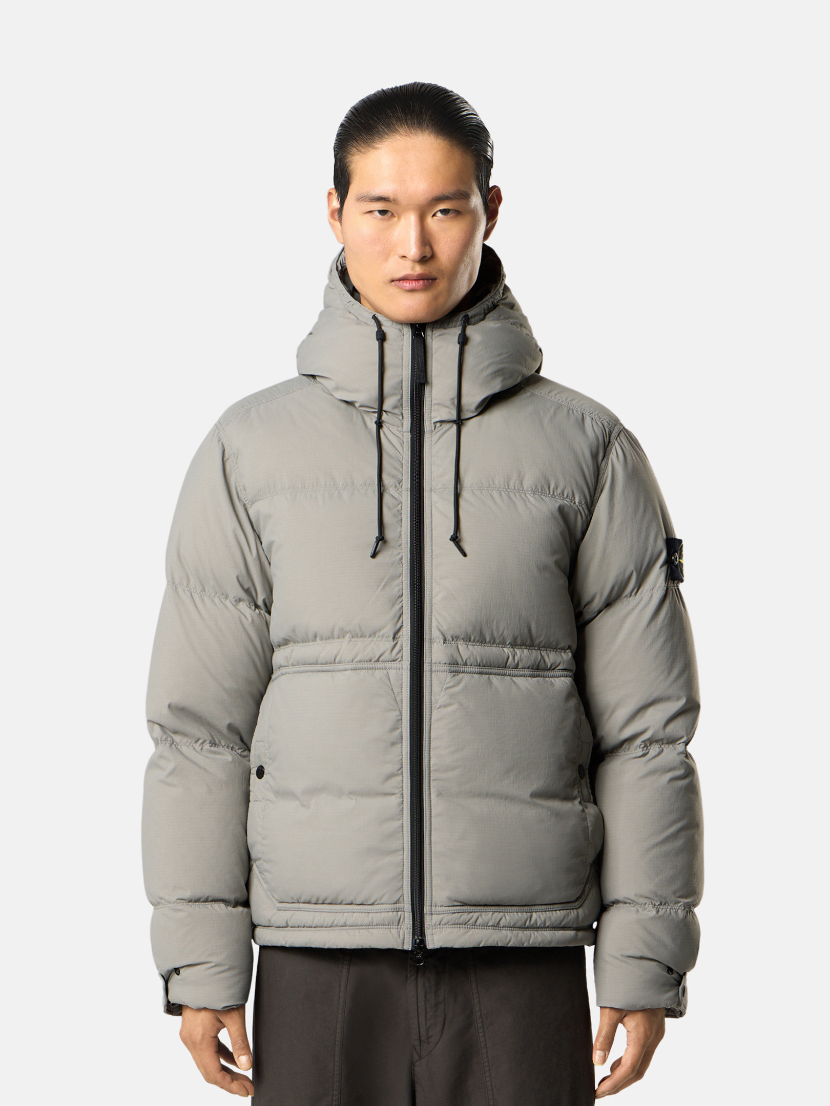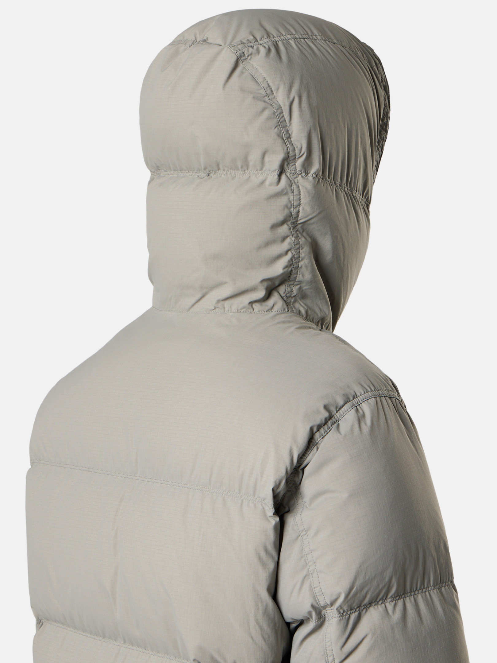 Down parka in CORDURA® Advanced Fabrics ripstop nylon with a matt appearance and water resistance, featuring snap-fastened pockets with snap, drawstring hem, and two-way zipper.