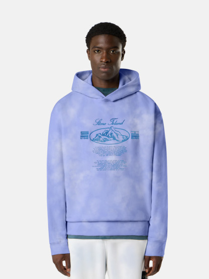Hooded sweatshirt in organic cotton fleece with an all-over motif created manually using the 'Ice' treatment that changes color based on the temperature. Each piece is one of a kind.