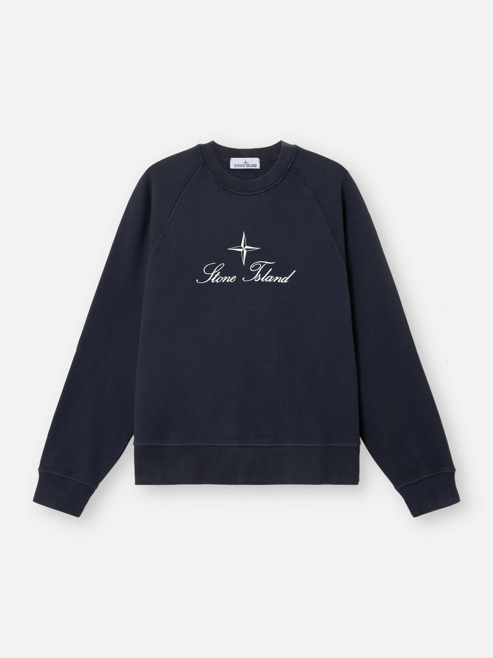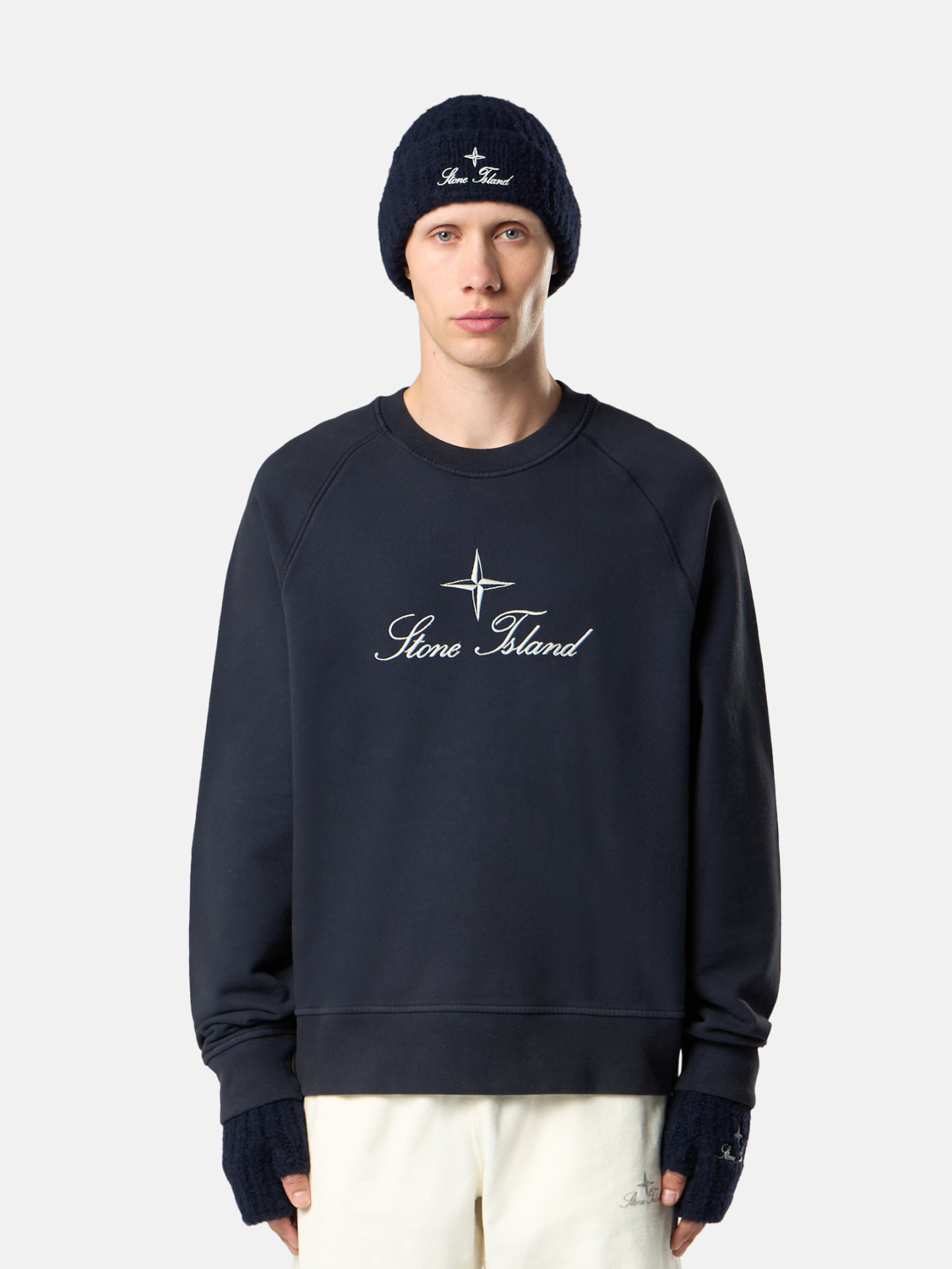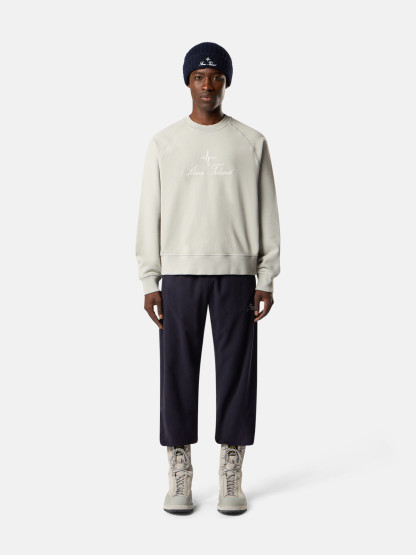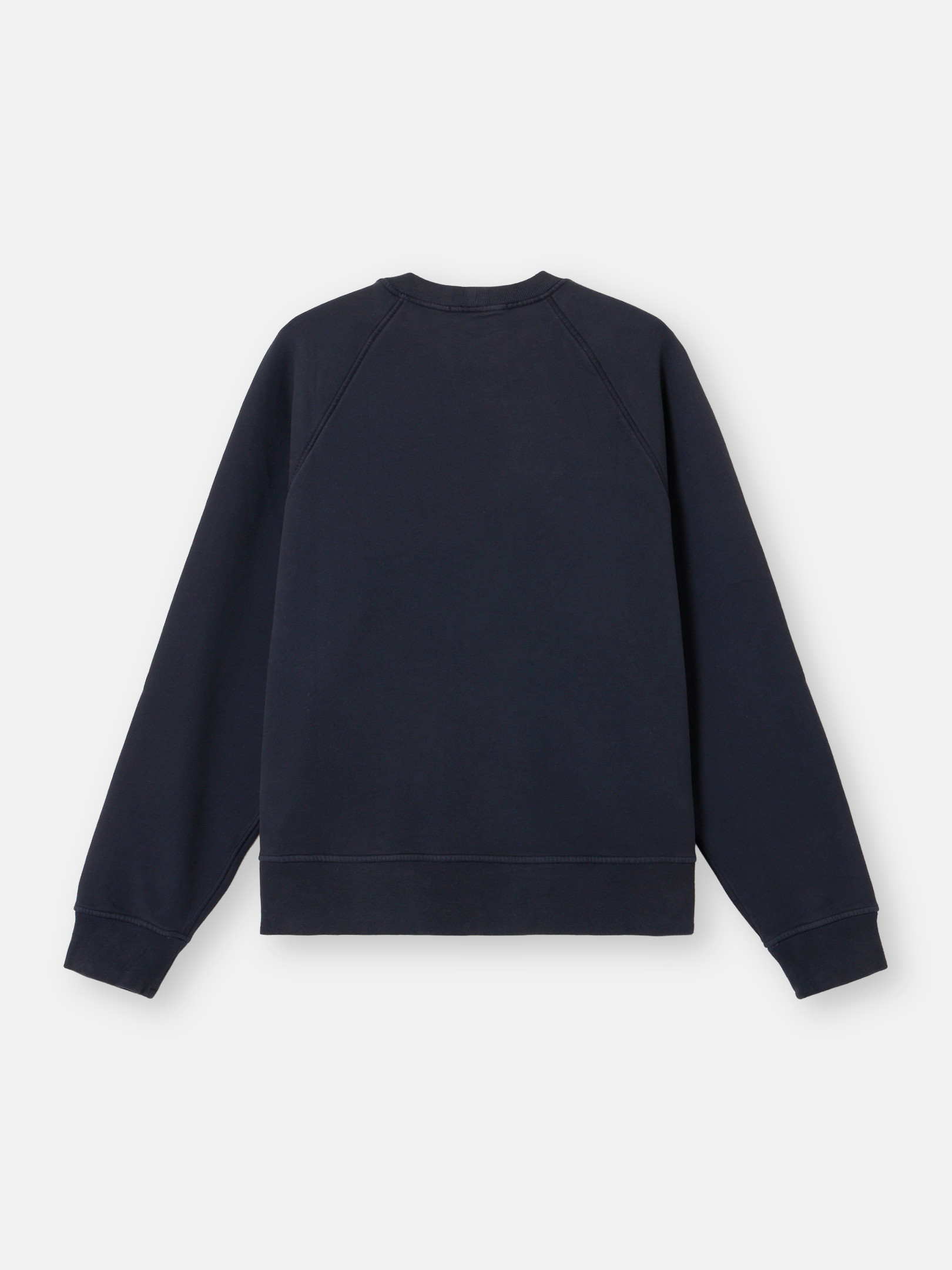 Crewneck sweatshirt in brushed organic cotton fleece, featuring an archival STOthtNE ISLthtAND logo, raglan sleeves, pockets, and ribbed trims. Garment dyed.