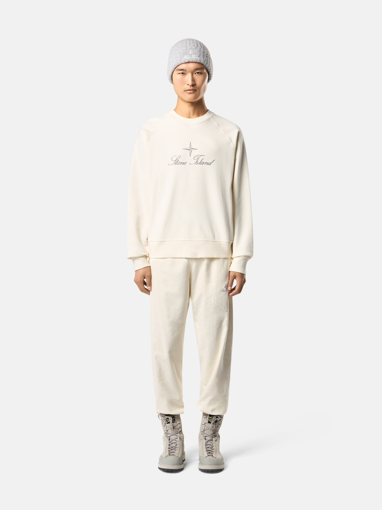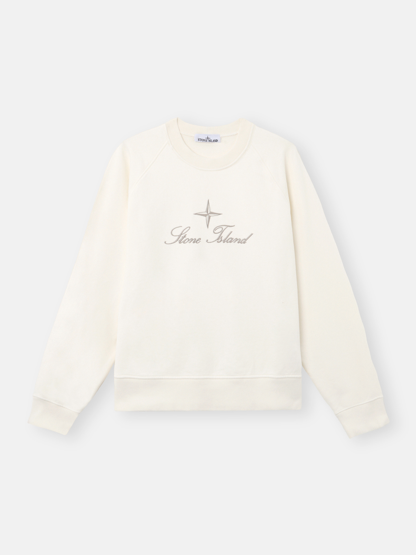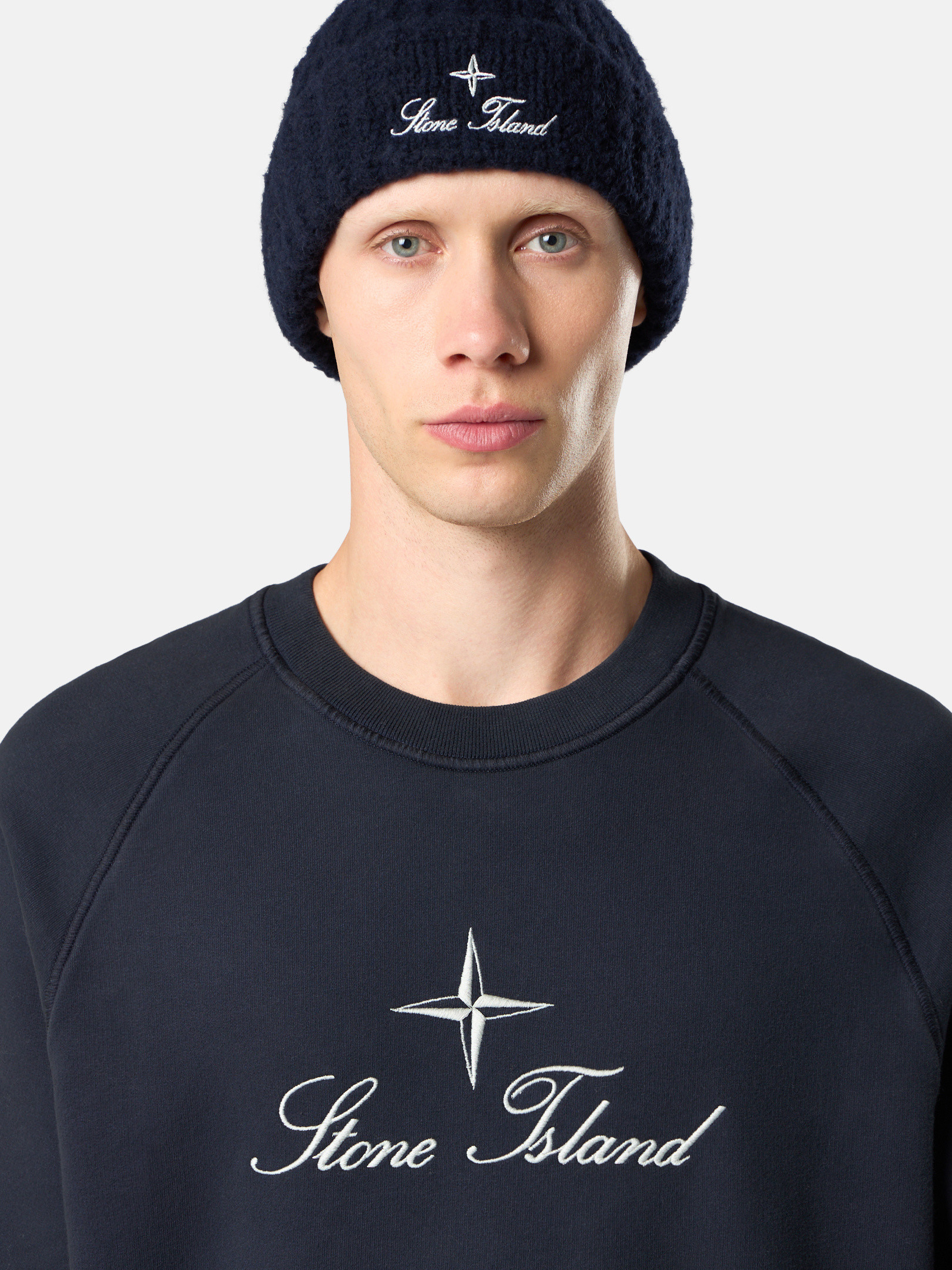 Crewneck sweatshirt in brushed organic cotton fleece, featuring an archival STOthtNE ISLthtAND logo, raglan sleeves, pockets, and ribbed trims. Garment dyed.