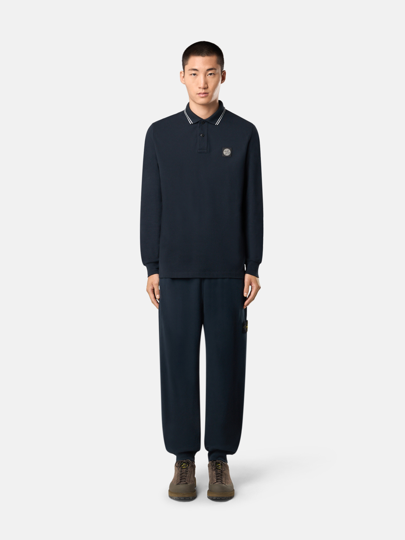 Standing hand pockets. One back pocket with snap under fixed band. STOthtNE ISLthtAND badge on left leg. Elasticated ribbed cuffs. Elastic waistband with inner drawstring. Regular fit.