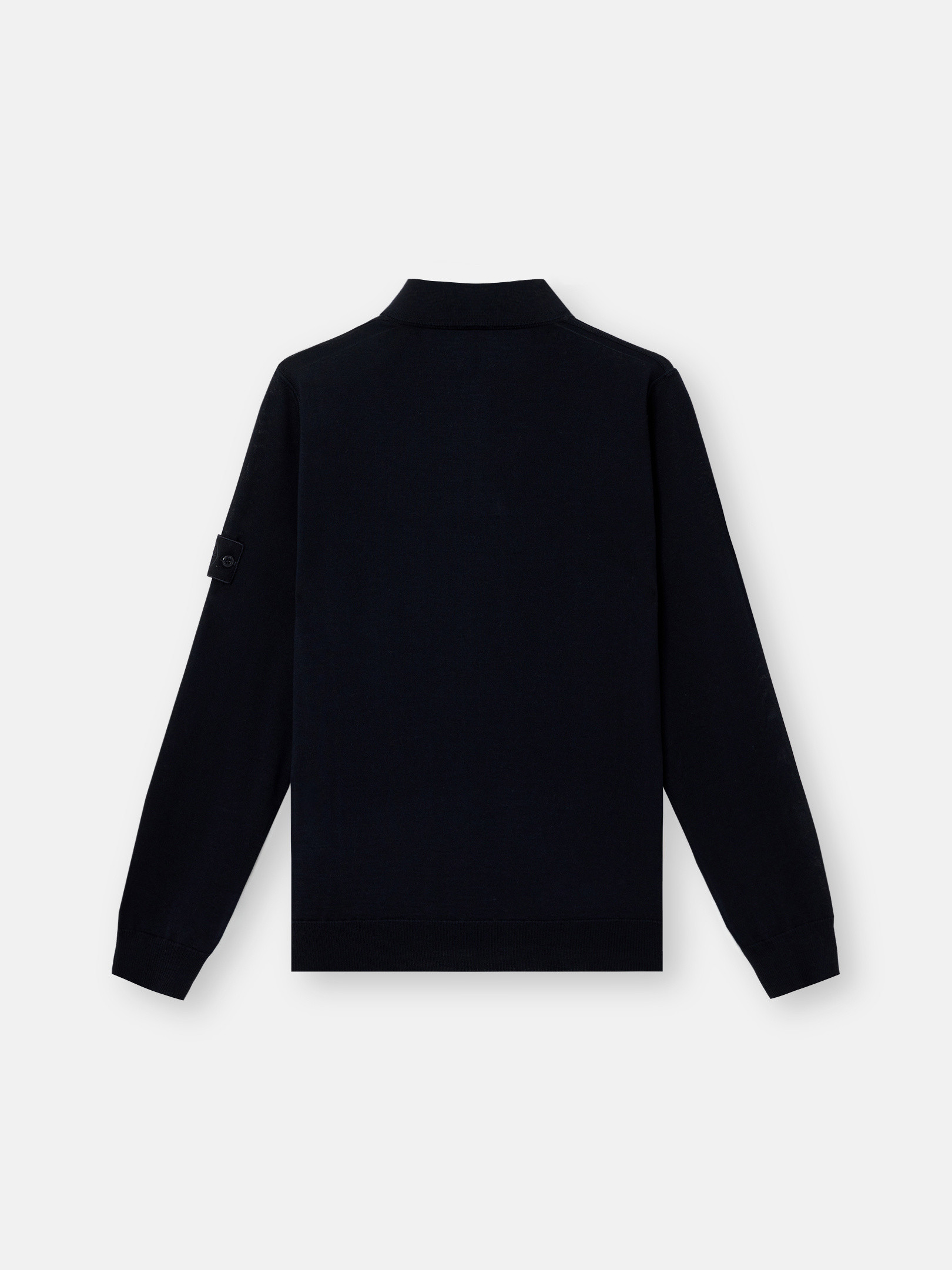 Ghost pieces, derived from the concept of camouflage, are totally monochromatic. Even the STOthtNE ISLthtAND badge is created in a special monocolor version to blend in with the garment. Knit long-sleeve polo sweater in light RWS pure wool. Stockinette stitch. Gauge 14.
