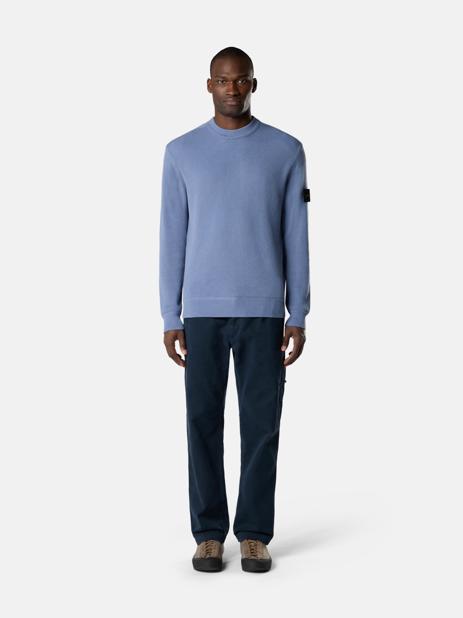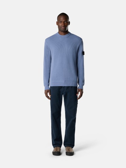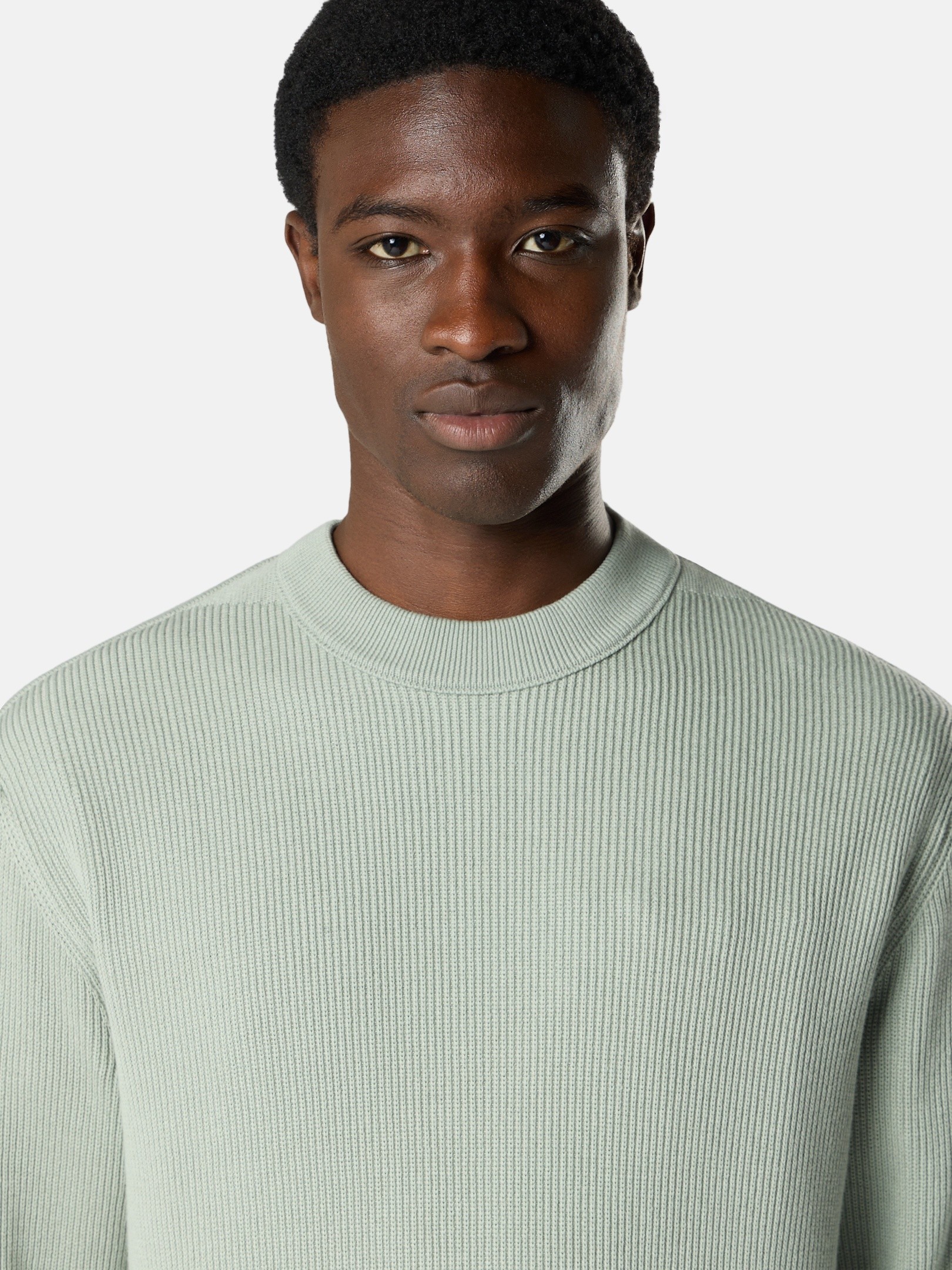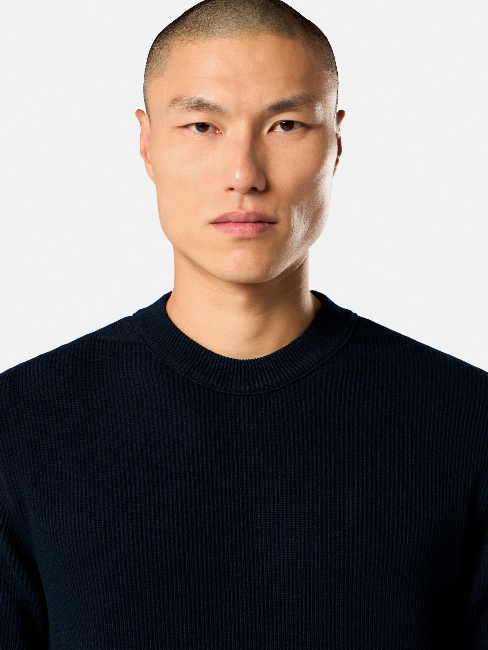 Knit crewneck sweater in ribbed soft organic cotton. Gauge 12.