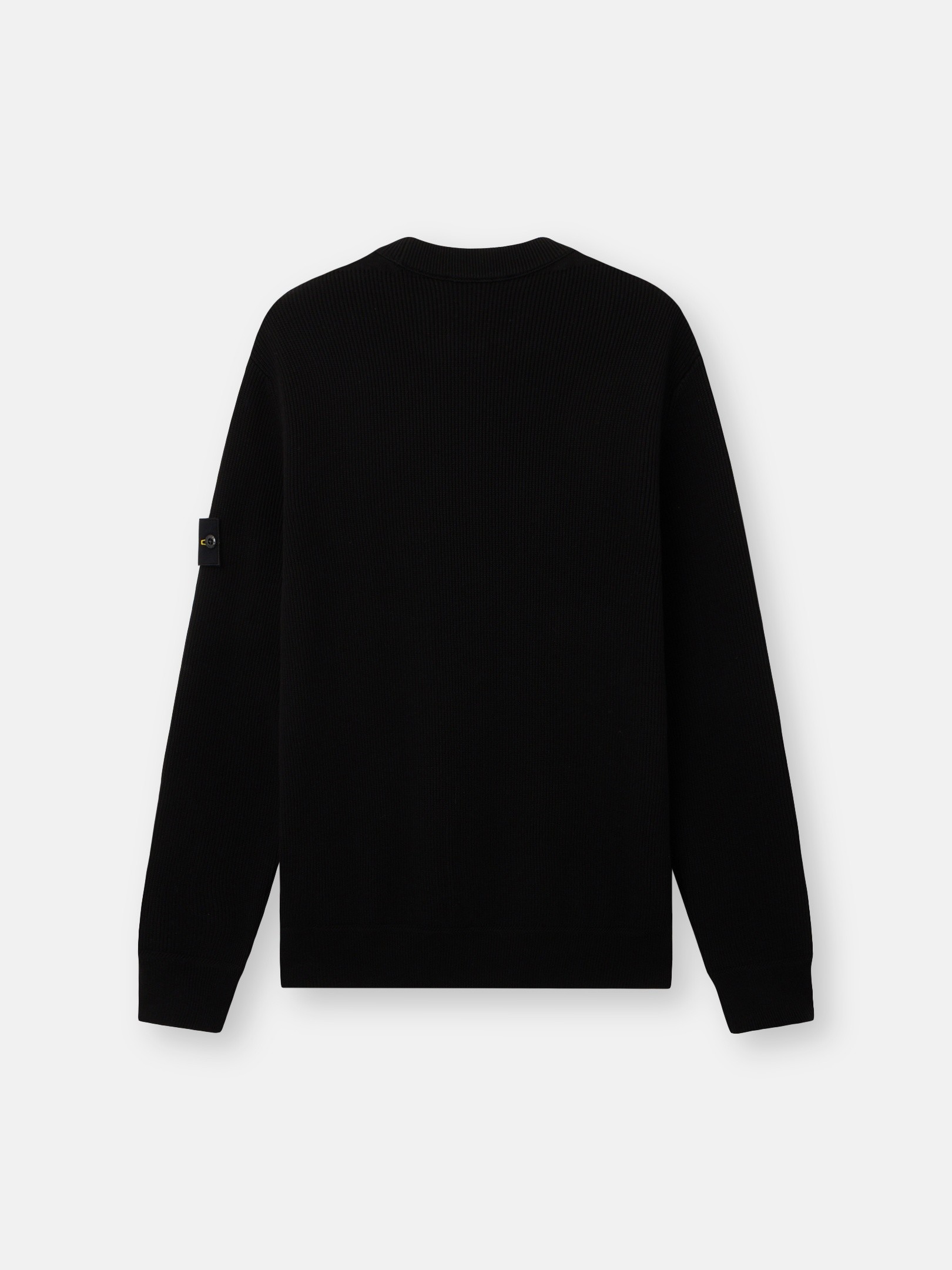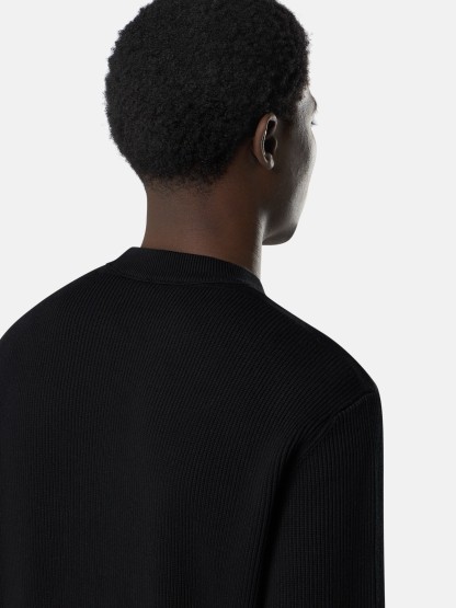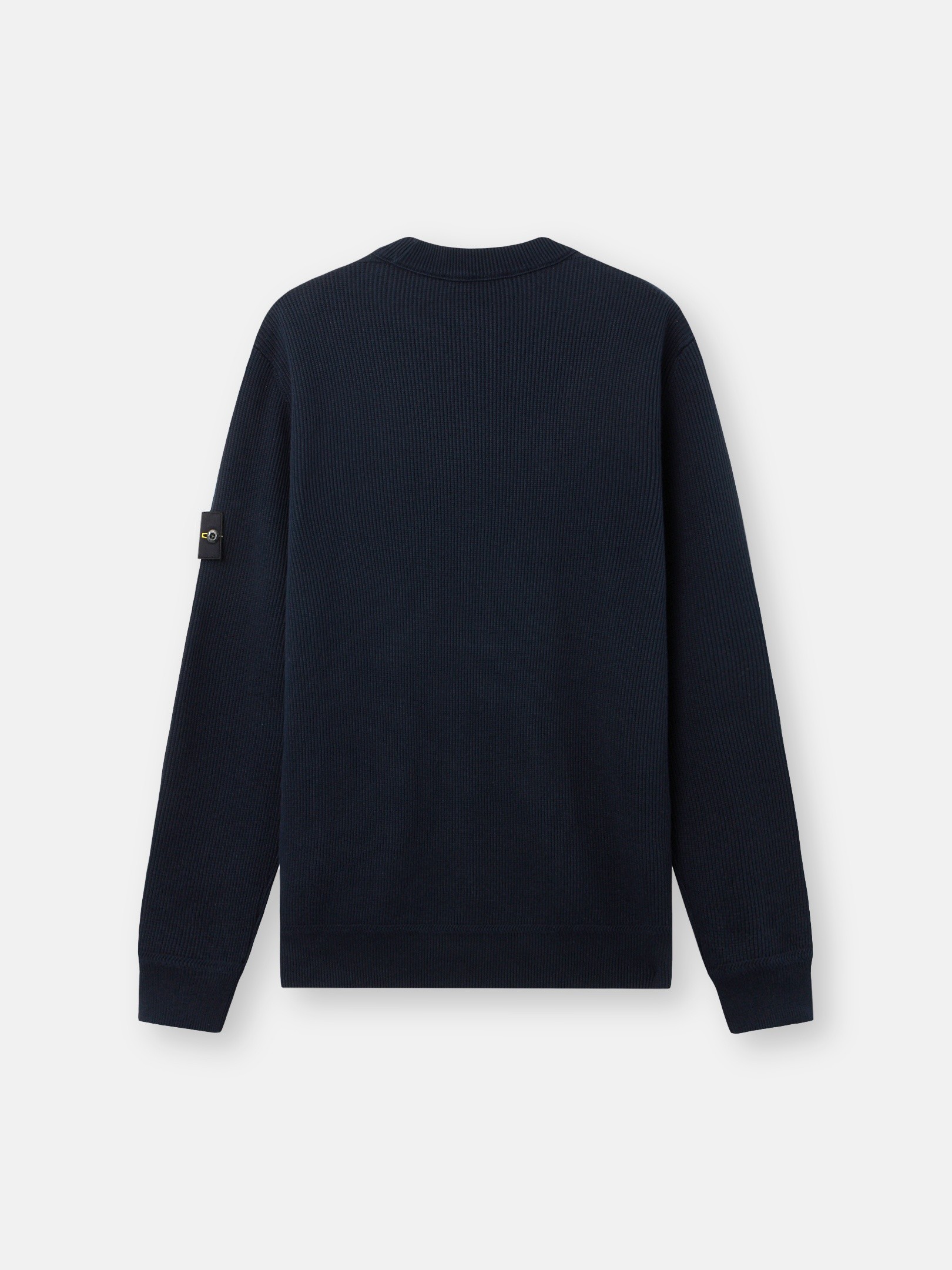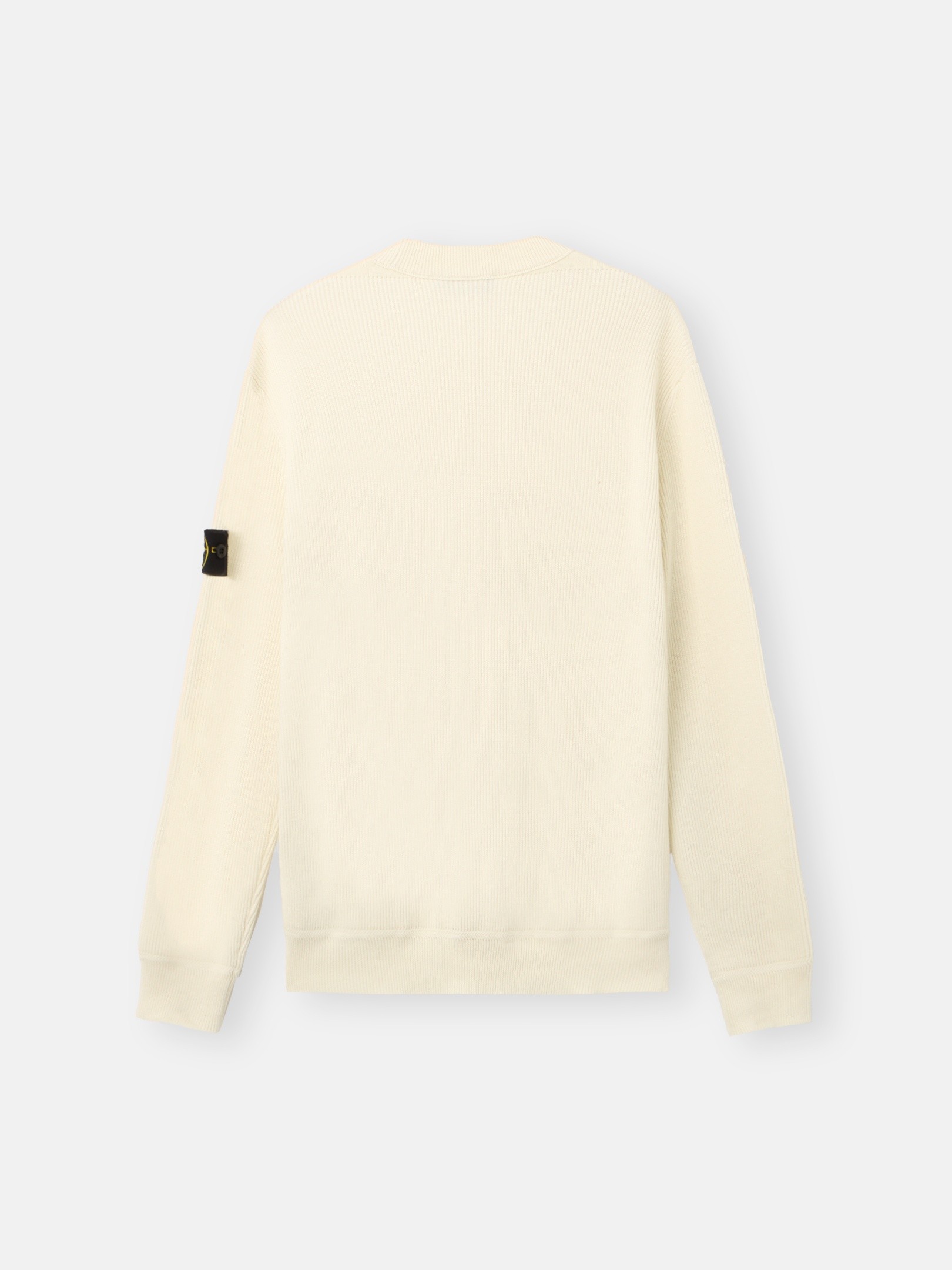 Crewneck sweater in ribbed soft organic cotton, featuring finer ribbing at the cuffs and bottom band. Gauge 12.