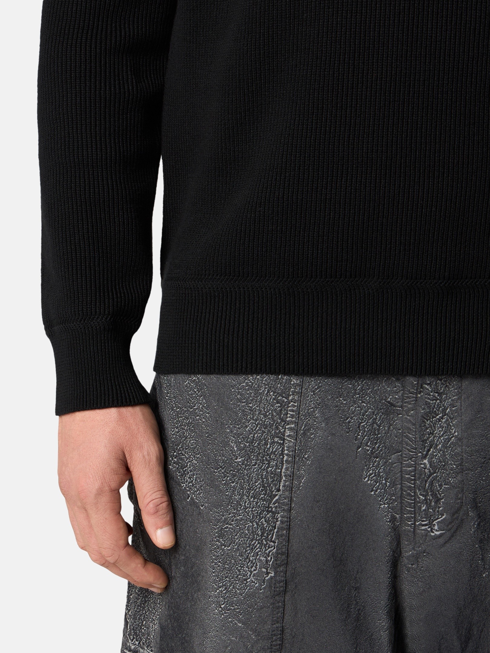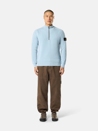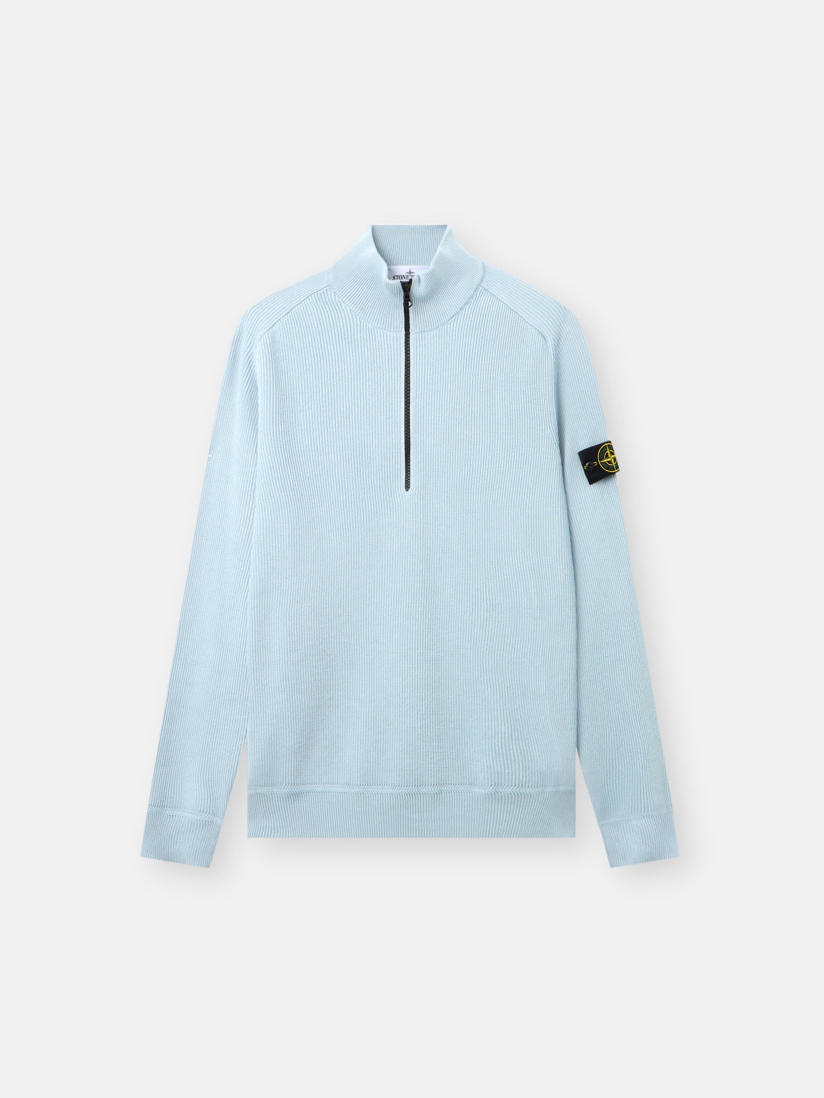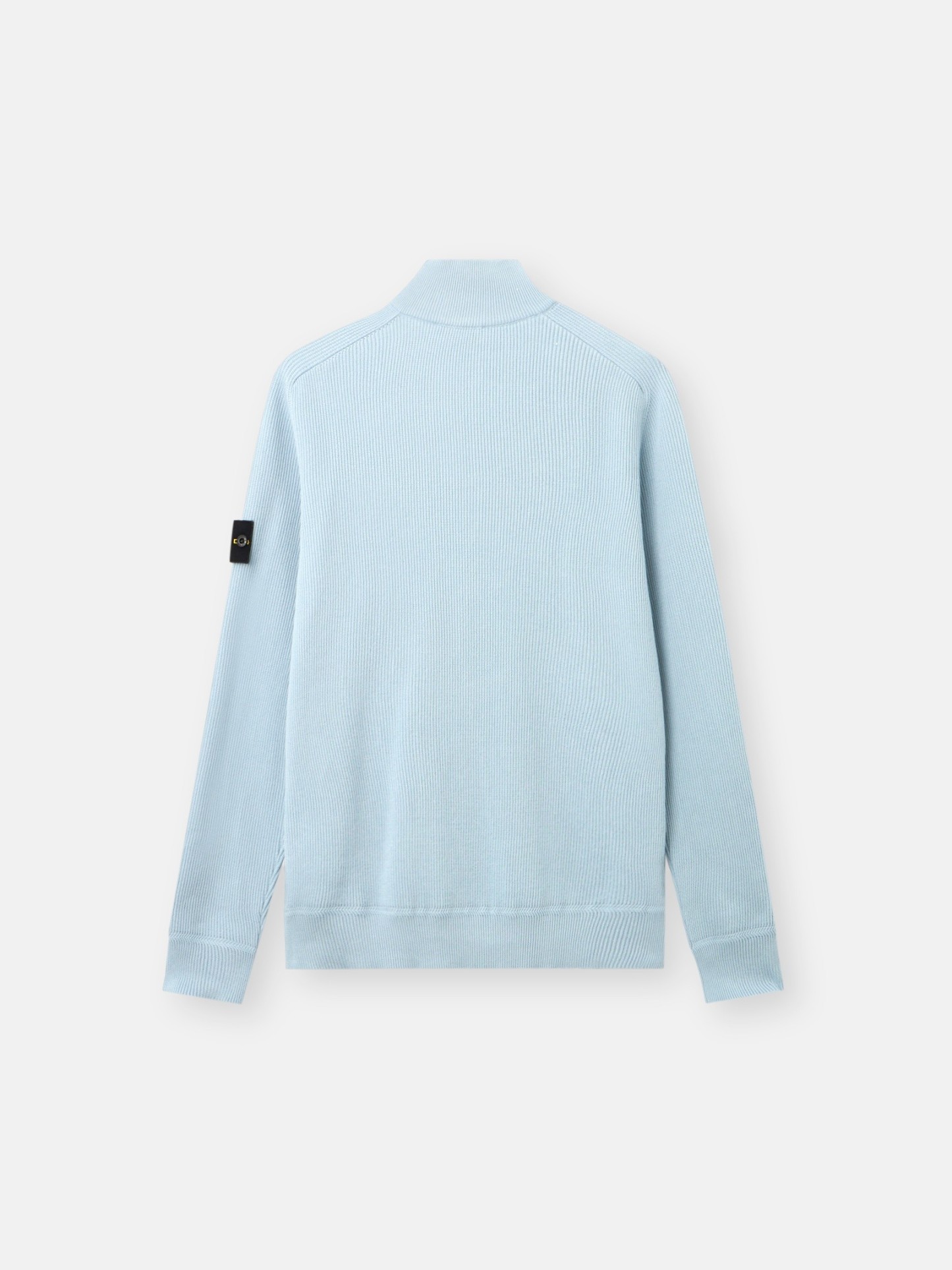 Knit half-zipper sweater in ribbed soft organic cotton. Gauge 12.