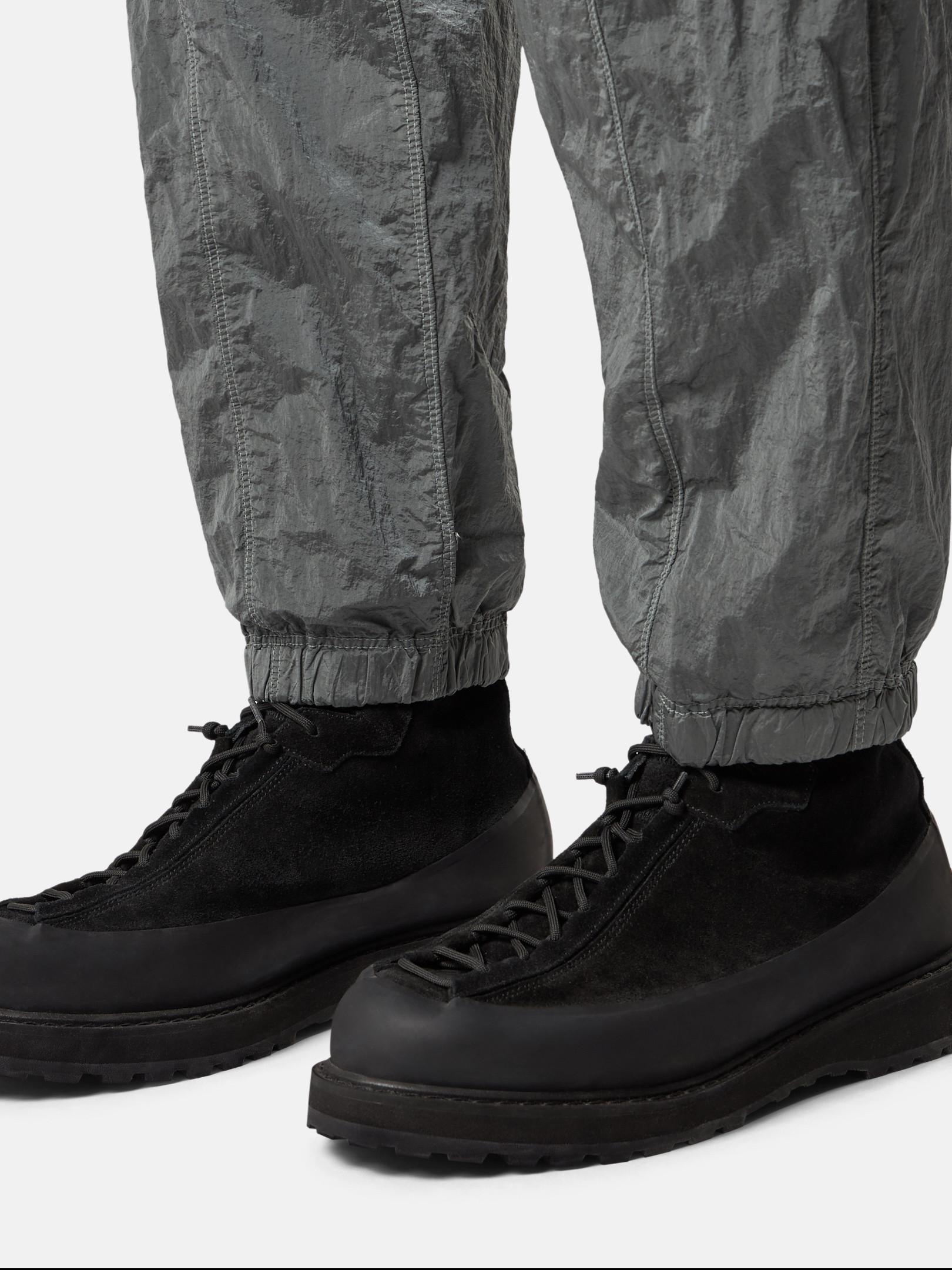 Sweatpants in STOthtNE ISLthtAND's iridescent Nylon Metal fabric. The evolution of this iconic fabric sees the use of ECONYL® regenerated yarns: the life-ended nylon, pre- and post-consumer, is recycled with a complex depolymerization process to create this fiber that features the same intrinsic characteristics of nylon from fossil raw material. Garment dyed with a double-color recipe. Nylon mesh lining.