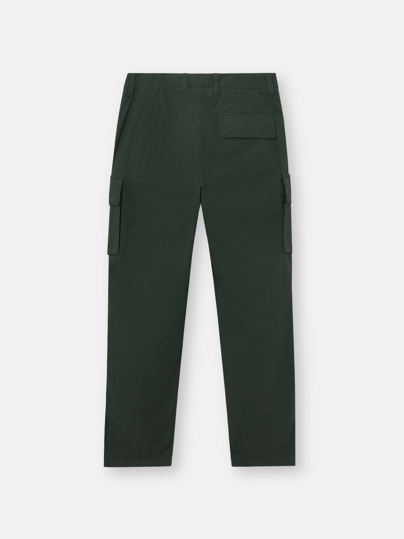 Cargo pants in canvas weave cotton, featuring bellows snap pockets and a back snap pocket, with zipper and div fly. Garment dyed.