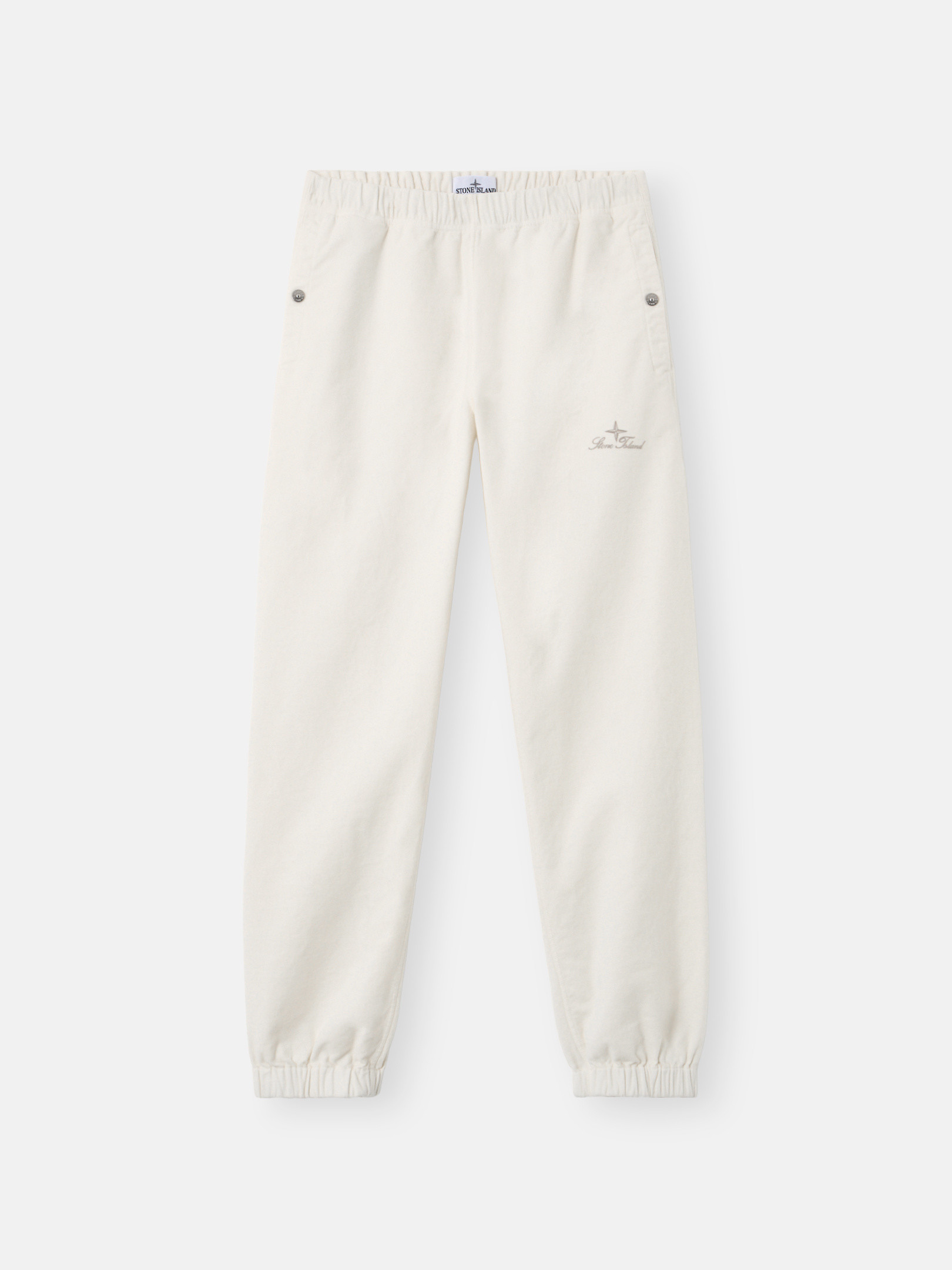 Sweatpants in stretch cotton moleskin, featuring an archival STOthtNE ISLthtAND logo, hand pockets, and an elasticated waistband with internal drawstring. Garment dyed.