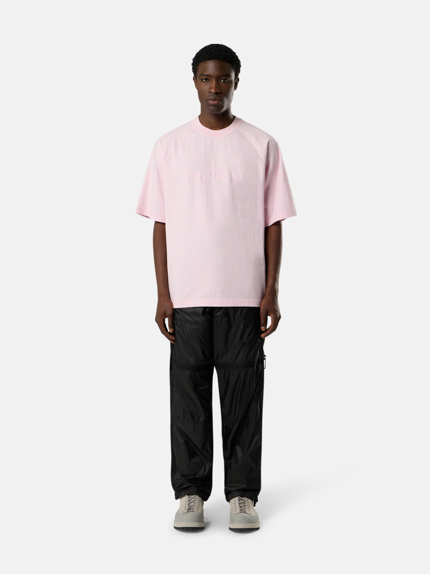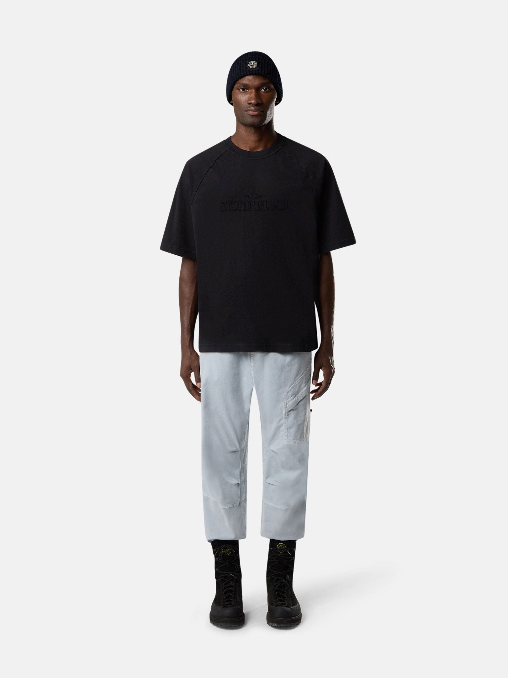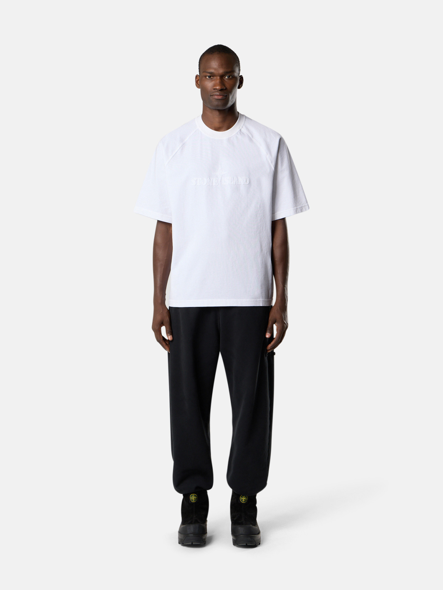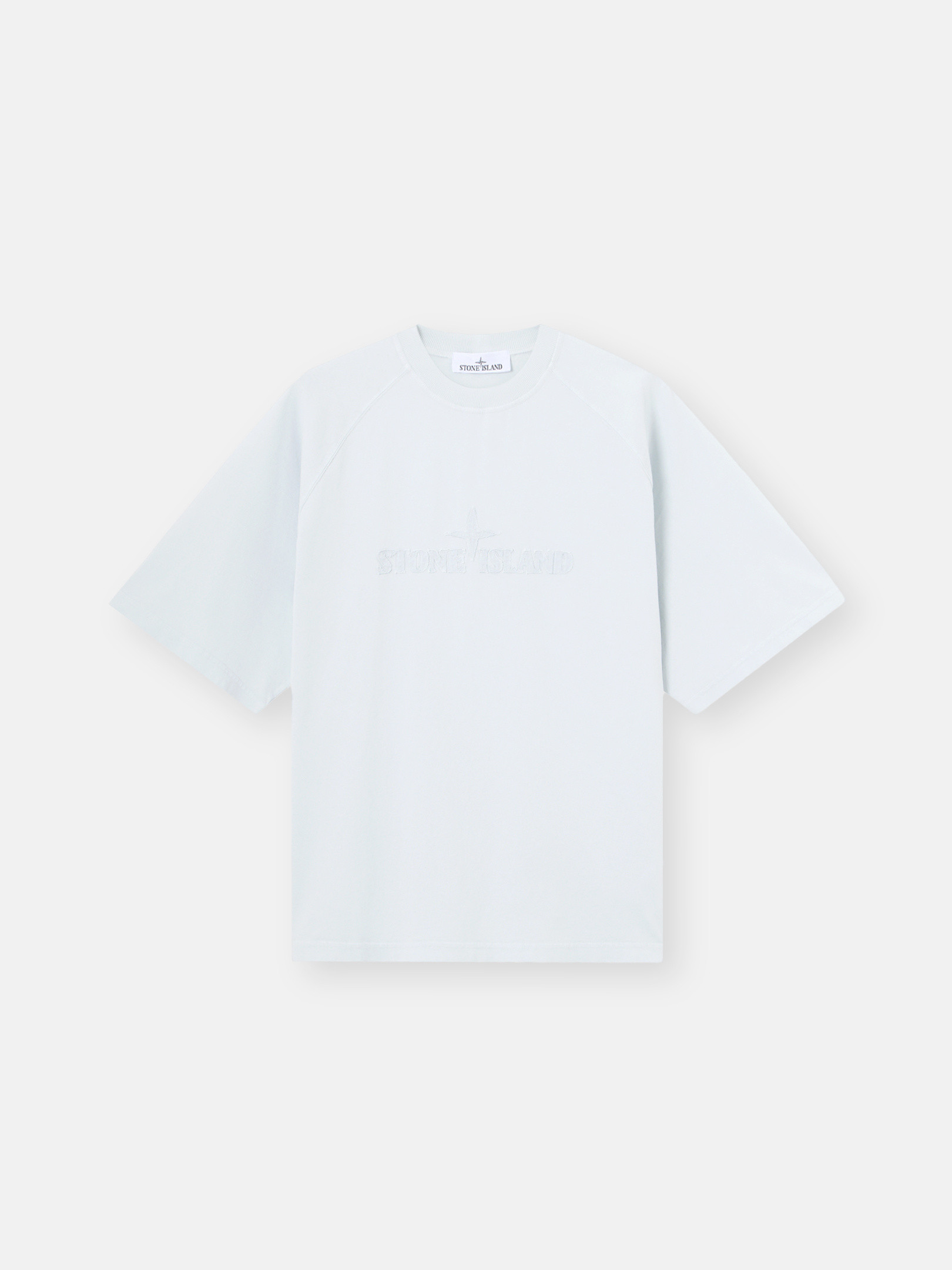 Ribbed neckline. Raglan sleeves. STOthtNE ISLthtAND logo embroidery with same fabric on chest. Oversized fit.