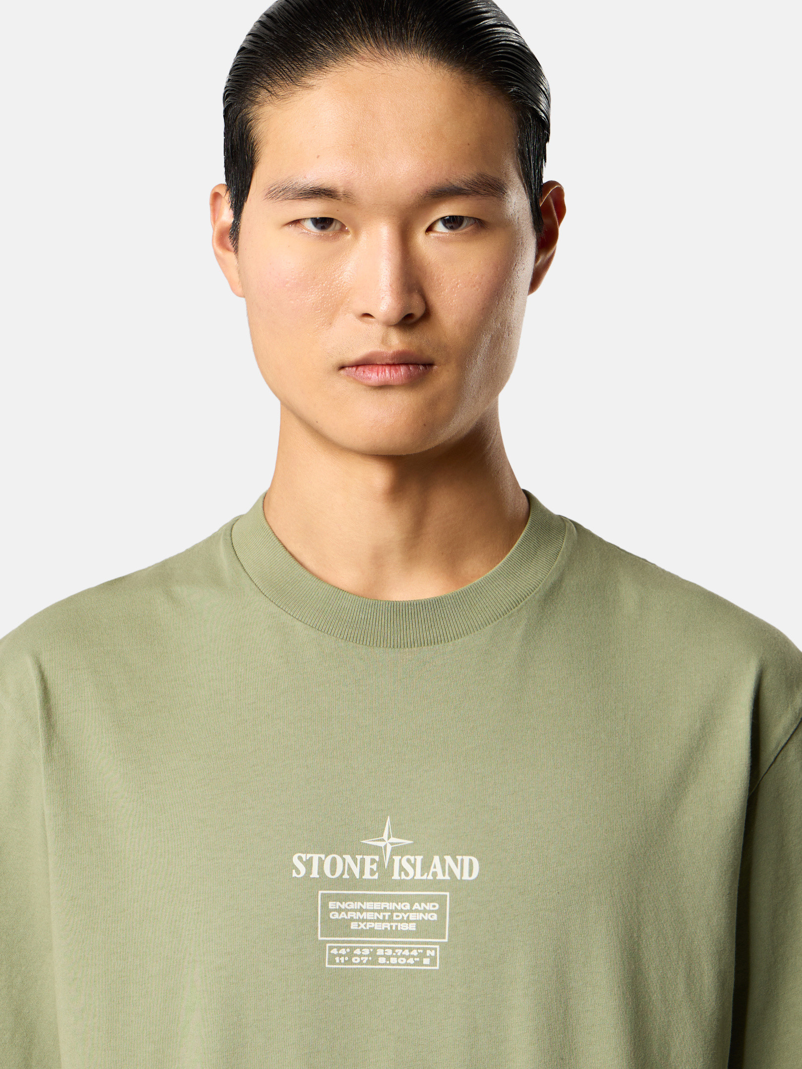 Short-sleeve T-shirt in combed organic cotton jersey, featuring the STOthtNE ISLthtAND logo on the chest and a two-tone Compass print on the back. Garment dyed.