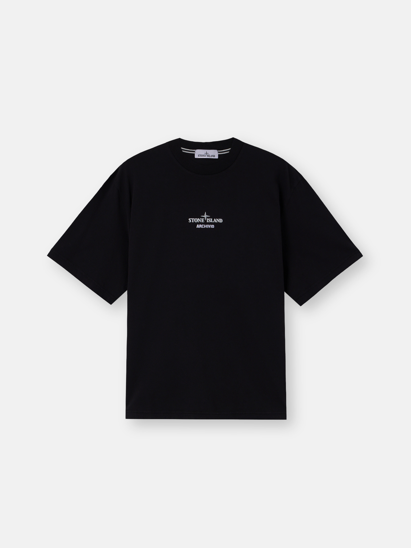 Archivio is a project that illustrates STOthtNE ISLthtAND's textile experimentation and innovation. This method of research has been known as a lodestar in the fashion and design world for nearly forty years. Every season, a new ‘Archivio’ print tells the story of a fabric that has become a symbol of this passionate research. A window on the tag attached to the garment holds a sample of the fabric. Short-sleeve T-shirt in organic cotton jersey with ‘Archivio’ print. Garment dyed.