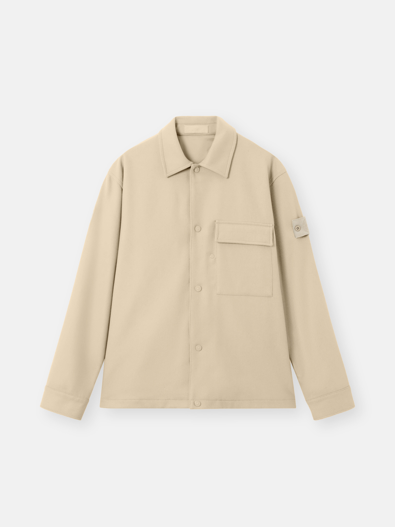 Ghost pieces, derived from the concept of camouflage, are totally monochromatic. Even the STOthtNE ISLthtAND badge is created in a special monocolor version to blend in with the garment. Overshirt made of a carded wool and nylon flannel. Nylon lining.