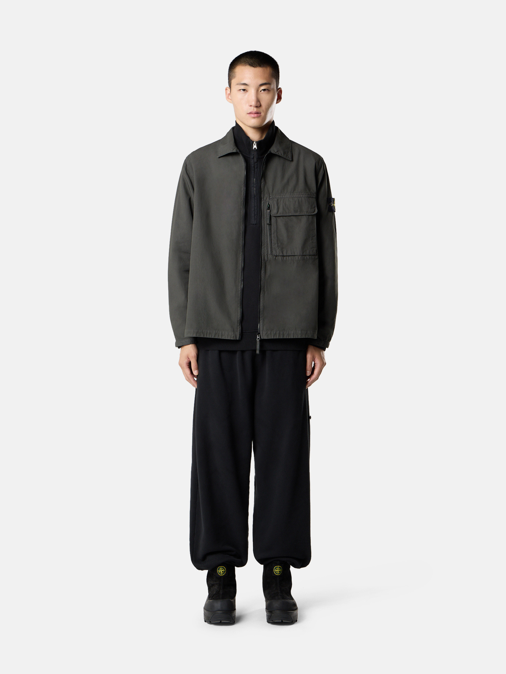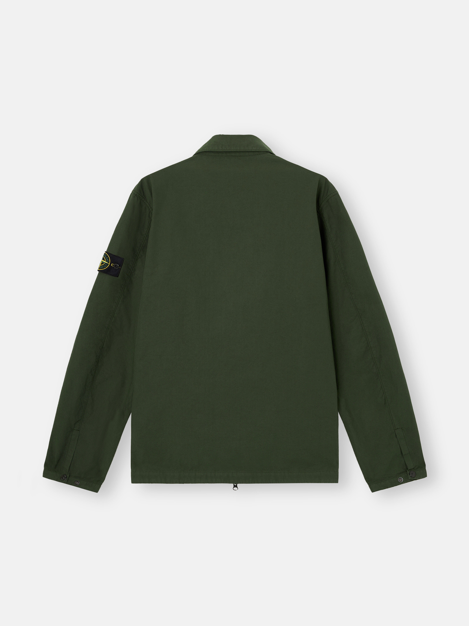 Overshirt in canvas-weave cotton, featuring layered chest pockets and snap-adjustable cuffs, with two-way zipper. Garment dyed.