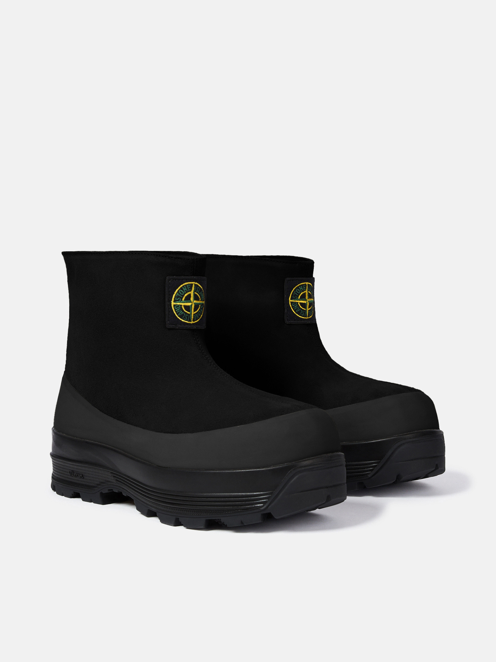STOthtNE ISLthtAND Compass logo patch on front. Tape loop on back. Contour rubber rand. Vibram® expanded rubber compound sole, allowing lightness and high shock absorption with excellent grip and durability for city life.